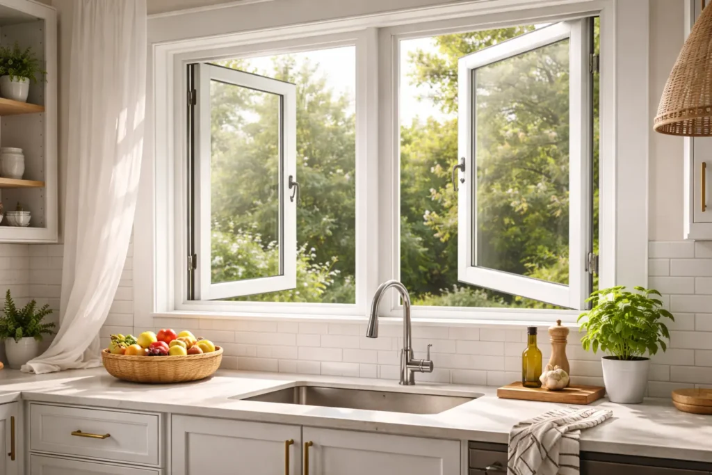 Casements are one of the most popular windows used in kitchens. They catch plenty of breeze and can be opened partially or fully. These windows are also a good choice if you want your kitchen to be filled with natural light.