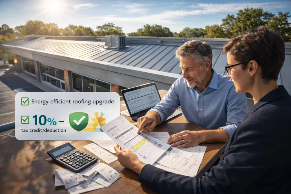 The energy efficiency of the roofing materials can affect how much of the cost is tax deductible. You may qualify for up to 10 percent of the expense of certain qualifying energy-efficient products or installations that meet or exceed requirements set by the IRS code.