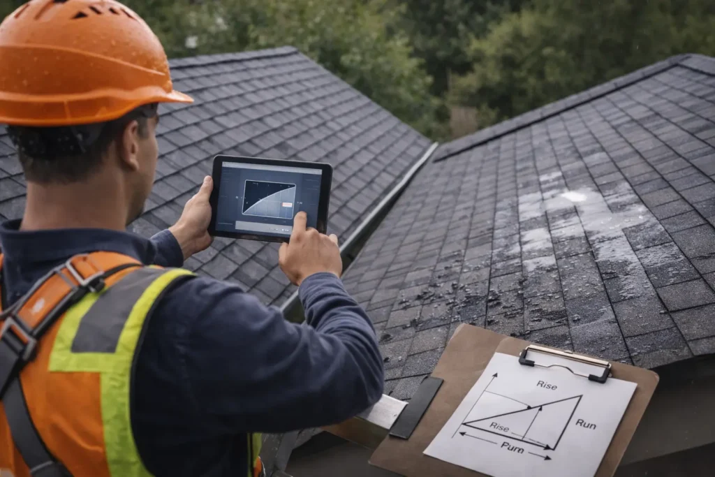 Finding the slope is the most accurate way to measure roof pitch. Slope is the ratio of the vertical distance (rise) to horizontal distance (run). For instance, a 6/12 pitch means the roof rises 6 inches for every 12 inches of run. Generally, a low-slope roof ranges between 2/12 and 5/12. A roof beyond 5/12 is considered a high slope.