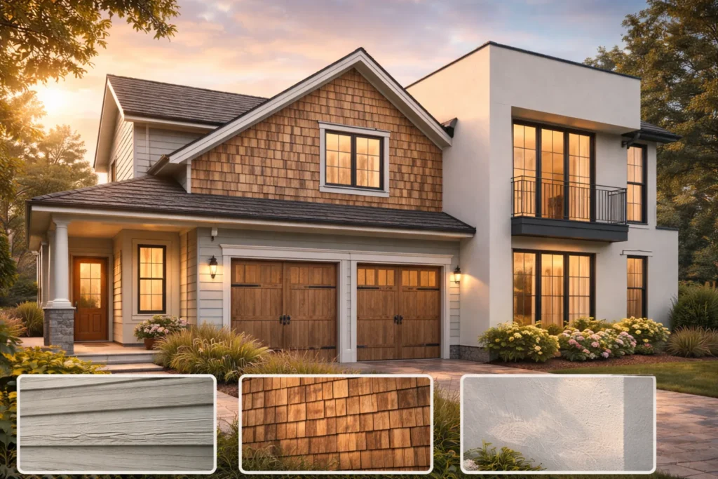 Some homeowners choose materials according to their home style. A traditional home style would have exteriors that feature plank siding or wood shakes, with standard asphalt shingles to match. In contrast, a modern exterior would feature flat exterior walls made of concrete or stucco. While there’s nothing wrong with adhering to a specific style, you could be missing out on design possibilities afforded by mixing textures from both styles.