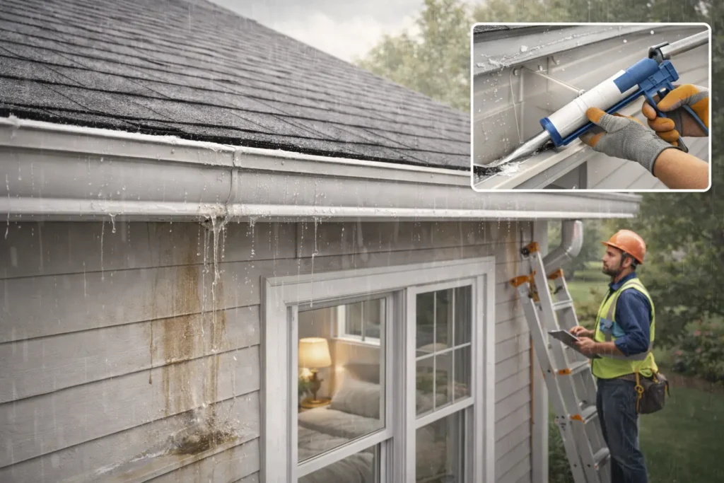 Solution: Leaky gutters can be sealed by caulking the joint from the inside, but some leaks or holes are too much for a simple solution. Your best bet is to have a professional residential roofing service provider check your home and make sure it’s protected from damage.