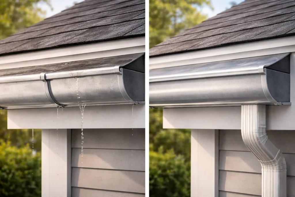 3. Downspouts – Downspouts are vital to the gutter system design because they ensure that water runoff is directed away from your home. That’s why gutter and roofing companies are quite precise about this. Gutter and downspout materials are usually the same. In case you choose a different material for your downspouts, verify their cost per piece.