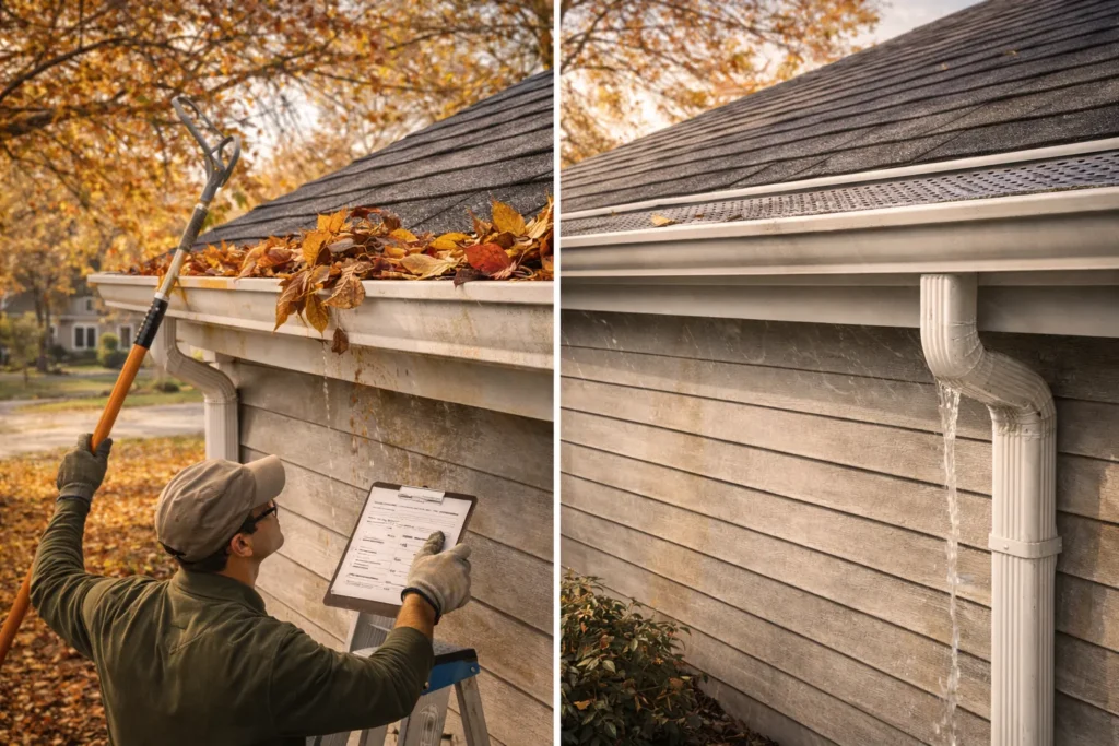 The leaves that fall from neighboring trees in autumn are by far the most typical clogging causes. To safeguard your gutters, cut away overhanging branches, or consider eliminating problematic trees entirely. Additionally, installing a leaf guard on your most vulnerable gutters will help.