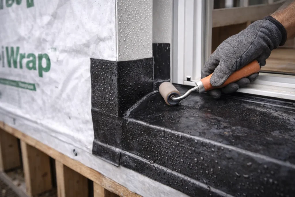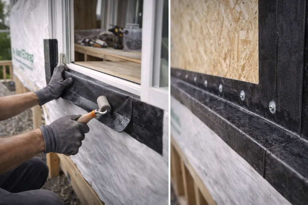 This weather barrier solution is a butyl rubber self-adhesive created to peel and stick around windows and doors, preventing water and air leak. It can also be used to seal around fasteners.