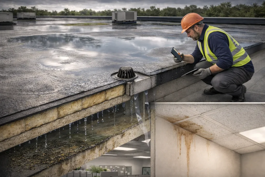 Like water pooling issues above, this may stem from a drainage problem, but it can also mean your commercial roof needs to be replaced as it may have been already compromised.