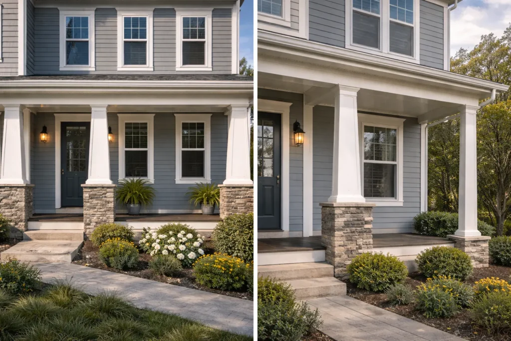 Windows need consistency while columns need proportion. Tall and thin columns attached to a disproportionately larger home give off the impression that the support is flimsy. Columns not only need to provide support, but also make it seem like they’re capable of doing so.