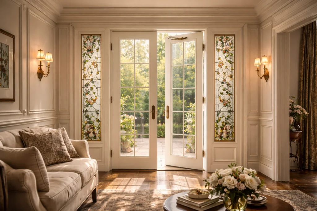 The concept of these French-style windows first made its rounds in Great Britain and eventually reached the shores of the U.S. The bourgeois homeowners of New York developed a strong preference for the French doors, which often incorporated stained-glass windows with various animal and floral motifs.