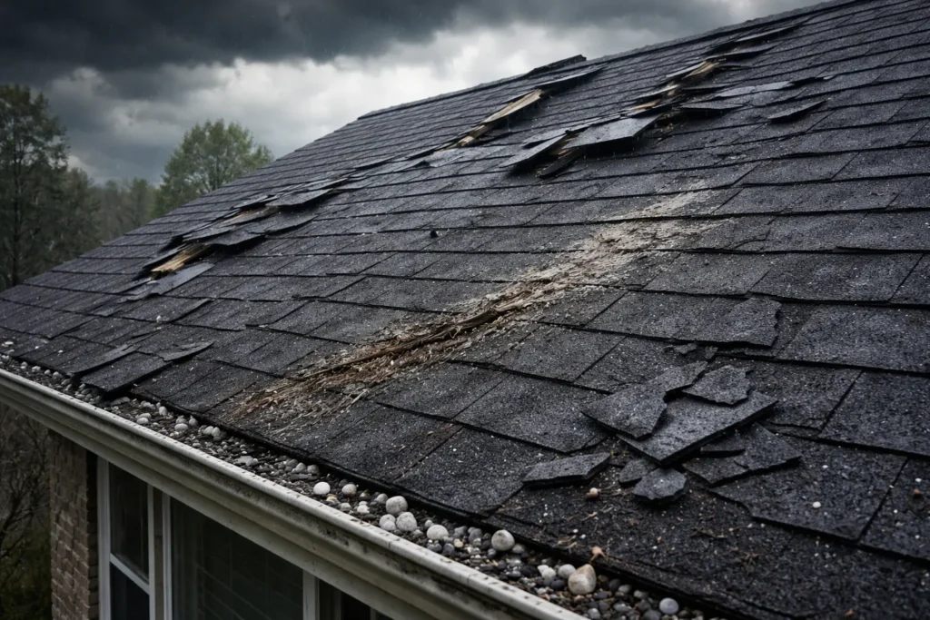 High winds. During a severe storm, strong winds, especially those that reach hurricane speeds, can cause tree branches to fall and rub against your shingles. They can also dislodge the shingles and send them flying into the air.
