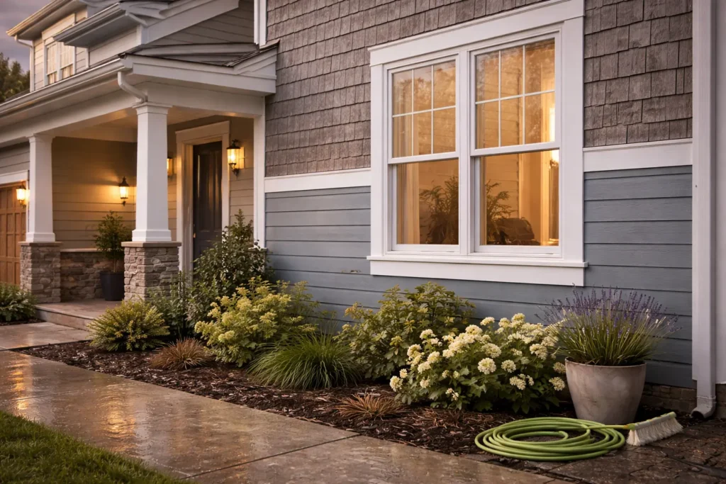 Vinyl siding comes in various colors, textures and profiles, giving you total versatility when designing your exterior. It resembles the look of traditional material like cedar shakes. This material also won’t rot or corrode since it’s moisture-resistant.