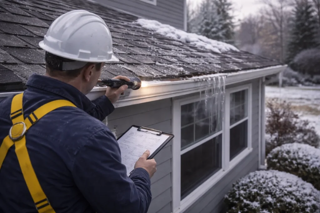 Keeps Your Roof in Shape – Cold drafts, ice, snow and rain can result in water damage on your roof. A professional inspection will ensure there will be no issues with your roofing system. Our services can minimize the effects of winter weather damage on your roof so you can stay protected throughout the year.