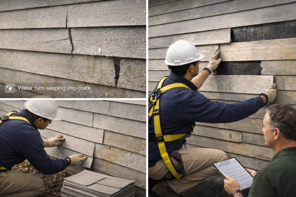 Cracks enable water to reach the underlayment of your siding. So, the longer you wait to fix the cracks in your siding, the more extensive the damage could be. If the cracks are only present in a few areas, you can opt to replace the affected panels only. However, if the cracks are all over your home exterior, it would be better to replace your entire siding.