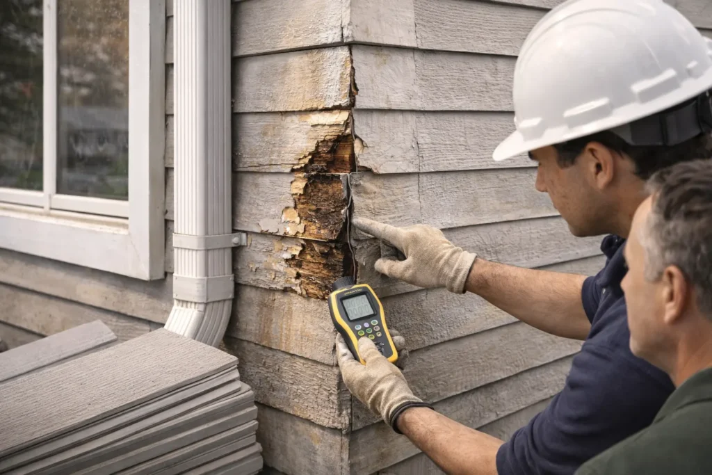 This usually happens in wood siding, and the main culprit behind it is moisture buildup. Dry rot does not only make your exterior an eyesore; it can also weaken your siding and reduce your home’s protection against the elements. Rot can also possibly spread to other parts of your home, so make sure to deal with this problem ASAP.